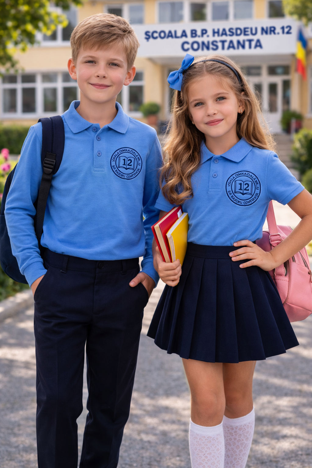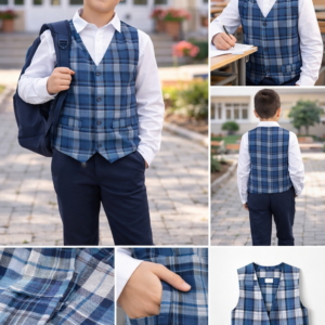 Materialul este plăcut la purtare, rezistent și ușor de întreținut, menținându-și forma și culoarea chiar și după spălări repetate. Croiala este lejeră, oferind libertate de mișcare pe parcursul întregii zile de școală.