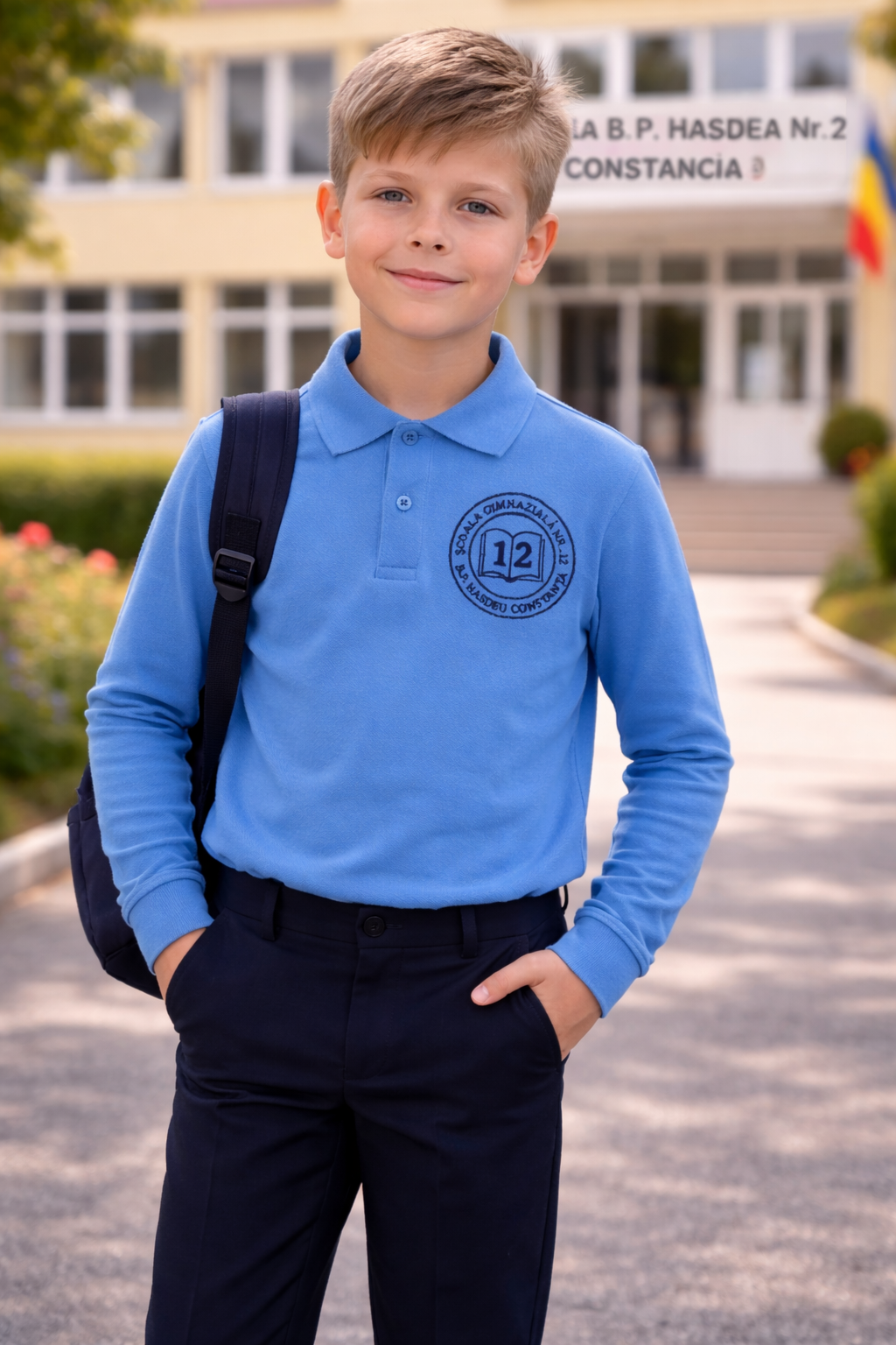 Tricou polo cu maneca lunga școlar, realizat pentru confort zilnic și un aspect îngrijit, potrivit pentru orice elev. Disponibil atât în variantă cu mânecă scurtă, cât și cu mânecă lungă, este alegerea ideală pentru toate anotimpurile.