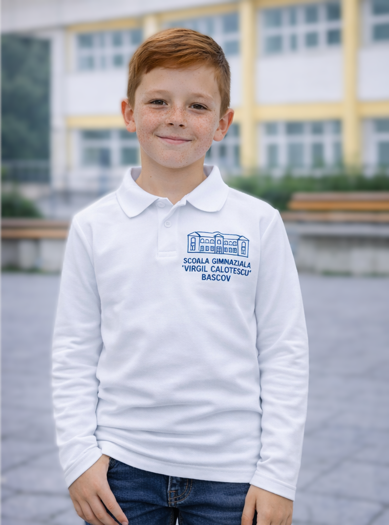 Tricou polo cu maneca lunga școlar, realizat pentru confort zilnic și un aspect îngrijit, potrivit pentru orice elev. Disponibil atât în variantă cu mânecă scurtă, cât și cu mânecă lungă, este alegerea ideală pentru toate anotimpurile.