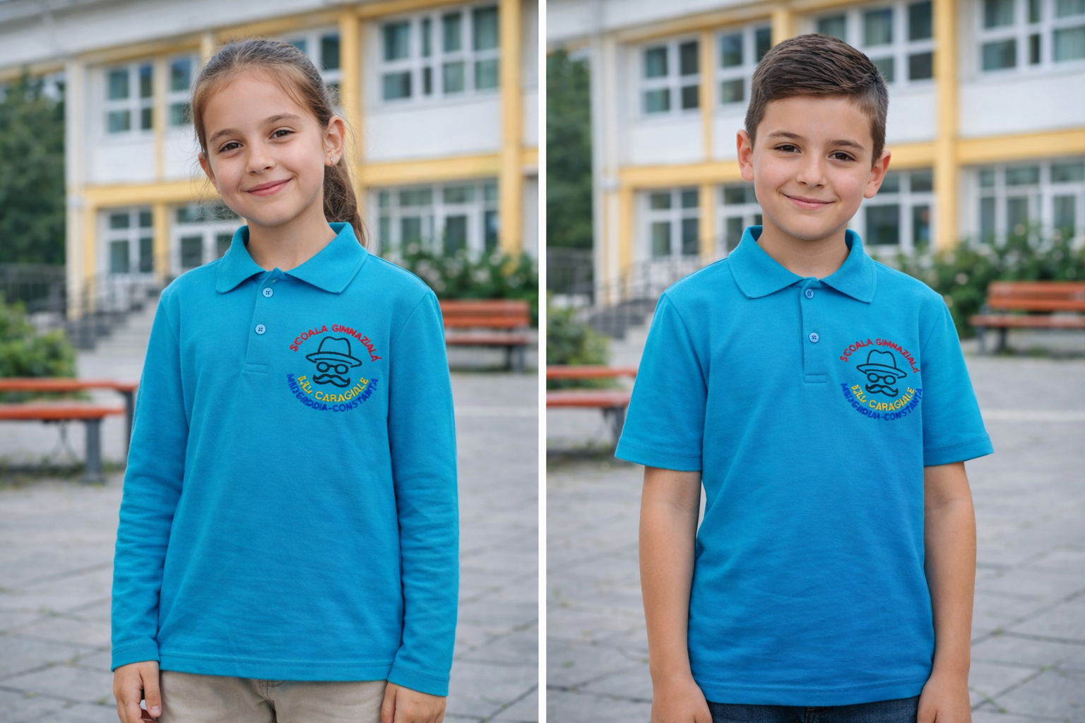Tricou polo cu maneca scurtă școlar, realizat pentru confort zilnic și un aspect îngrijit, potrivit pentru orice elev. Disponibil atât în variantă cu mânecă scurtă, cât și cu mânecă lungă, este alegerea ideală pentru toate anotimpurile.