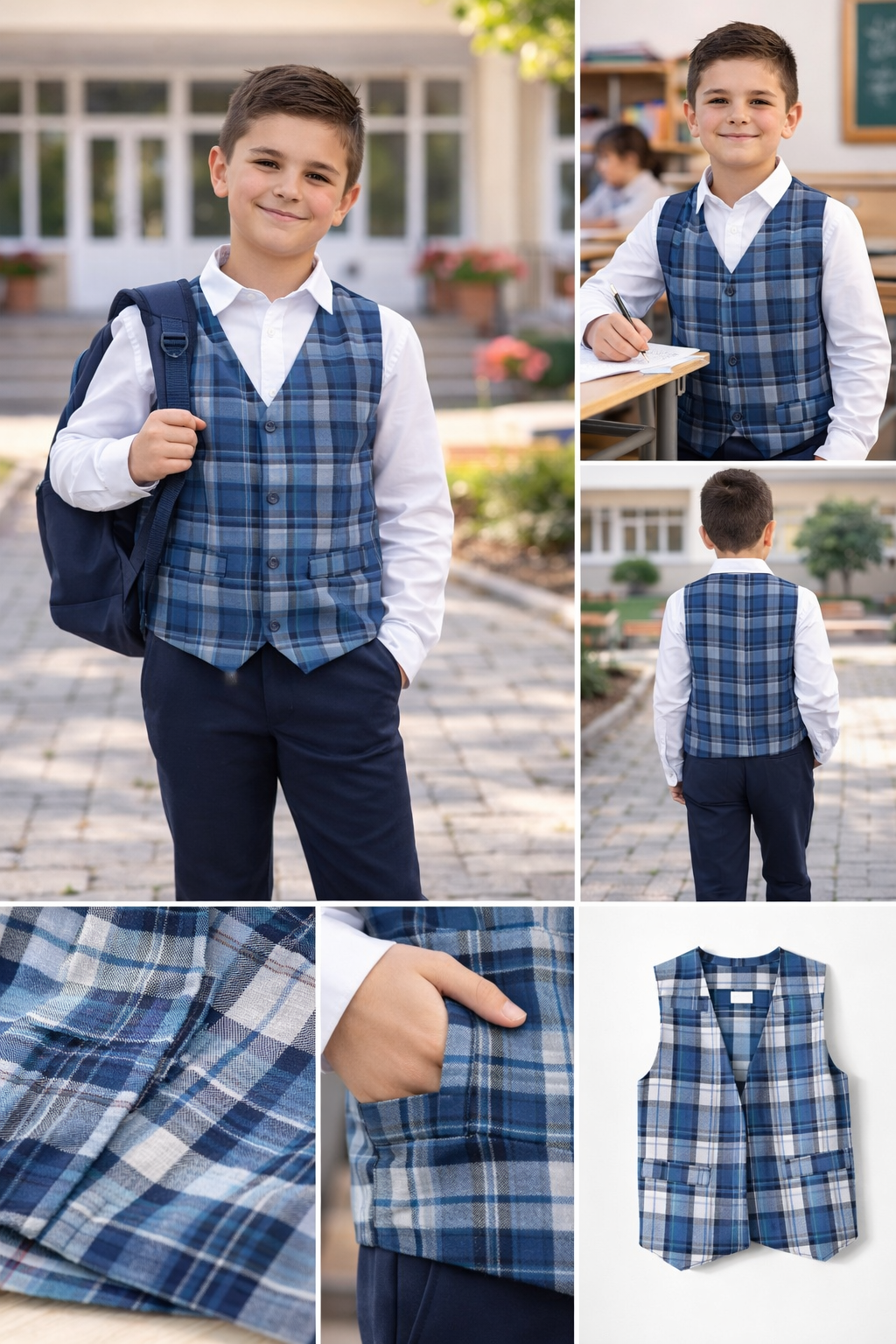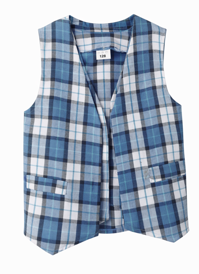 Vestă elegantă pentru băieți, creată special pentru un aspect îngrijit și modern în mediul școlar. Realizată din material rezistent și confortabil, această vestă completează perfect uniforma, oferind un plus de stil și seriozitate.